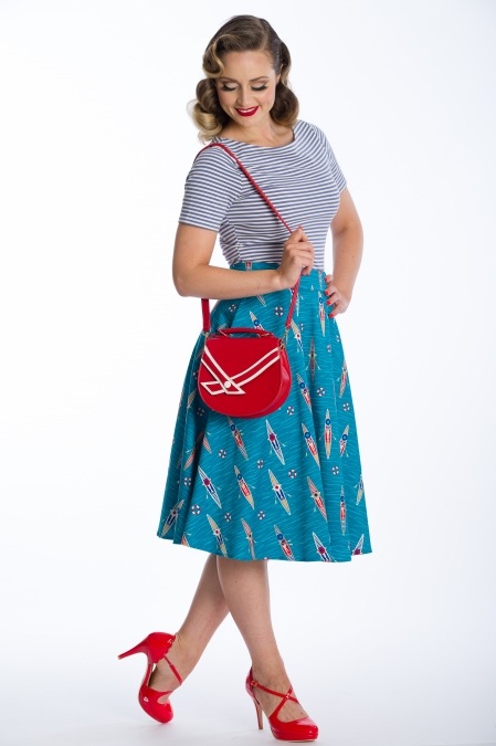 Why not add a dose of nautical vibes to your retro ensemble with this 50s Nautical Kelly Lee Handbag in Red!