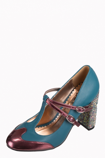 The favourite features of the Dancing Days Modern Love 60s Teal Shoes include a subtle lacquer of pearl teal gloss and a bordeaux red contrast colour.