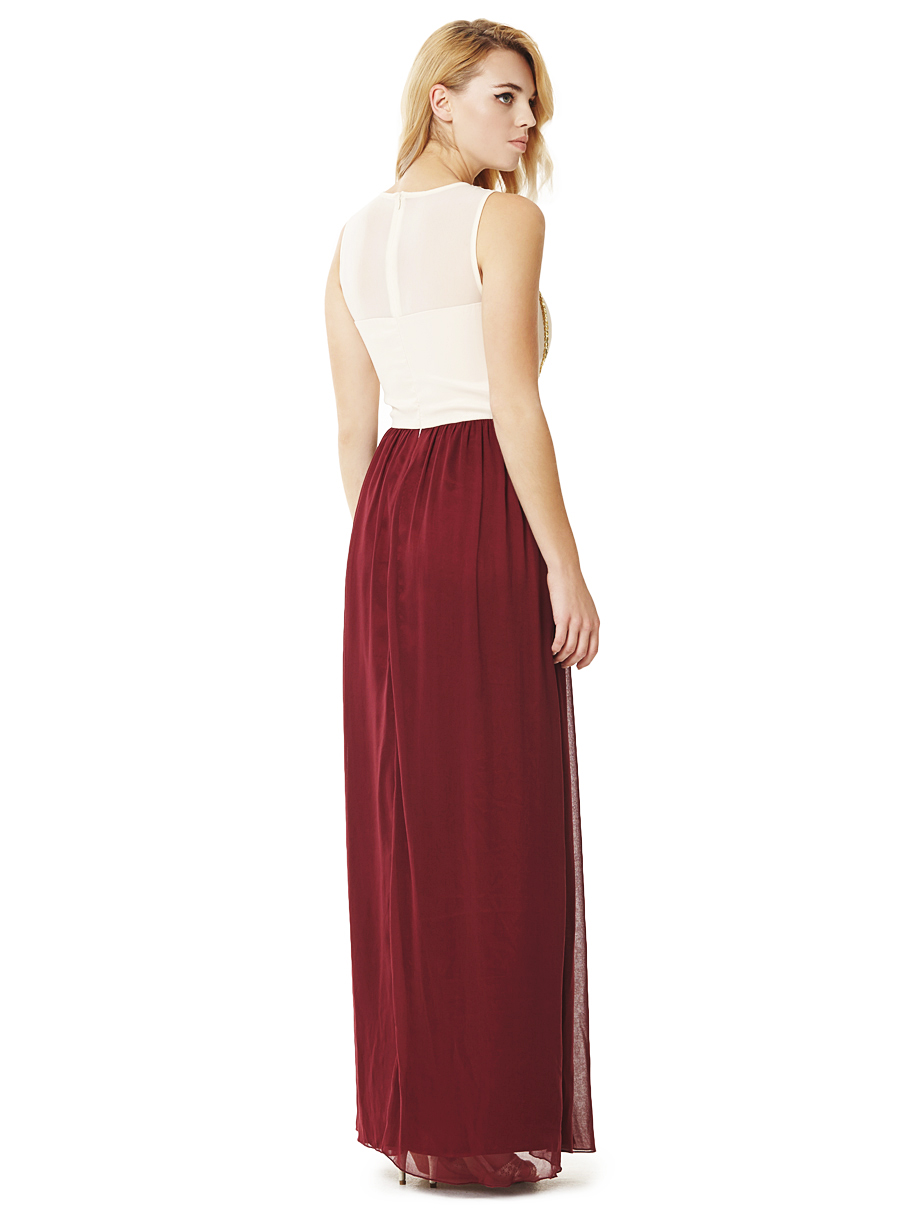 DESCRIPTION We present the stunning Chi Chi Kylie Dress in UK Sizes 8-16. This sleeveless maxi prom dress has an adorable Gold Sequinned Bodice with intricate beads to get you noticed at your upcoming party! The skirt is made from a luxurious drape fabric which flows all the way down to the floor exhibiting a red carpet style dress. The sangria colour skirt really brings you to the height of the Autumn Winter season for 2014! Lightly padded built-in cups to the front of the bodice, create volume and is styled to make a lasting impression at your upcoming party! To the back of the bodice, this stunning dress continues a two tone theme with stunning style. The Chi Chi Kylie Dress features a sumptuous chiffon skirt which adds a grecian twist and to this red carpet dress! This beautiful dress offers a figure flattering cut thanks to Chi Chi's trendsetting design. The dress is fully satin lined and and falls to a midi knee length style. Uniquely designed with floaty drape fabric which skims over hips and thighs leaving you with a flattering look. The Chi Chi Kylie Dress fastens with a concealed side zip for easy of entry, and if you're looking for a special dress for your next event then this sleeveless maxi dress will entice envy and admiration and is oh so on trend for AW'14 season! This number will work wonders for most body shapes, and makes this a must have for your Autumn / Winter '14 wardrobe. The dress has been uniquely designed to make a lasting impression and is truely a treat to wear as it's very comfortable with the comfort of an elasticated fit. The Chi Chi Kylie Dress is crafted from a stretchy material providing comfort and support for a perfect figure flattering cut. An up-to the minute cut along with the deluxe satin lining, makes this dress an impressive style. Perfect worn at Proms, Day Parties, Weddings, Bridal occasions and many other special events and is sure to put you on the best dress list for the evening! We're an authorised Chi Chi stockist and are proud to bring you the Chi Chi Collection at PDUK. Please read our customers reviews on this item or be the first to comment! Chi Chi Kylie Dress In BriefStyle: Sleeveless Maxi Dress Details: Gold & Sequin Bodice Embellishments Length: 55" ( Measured from Underarm to Hem ) Neckline: High Waistline: High Not sure which dress best suits your body shape? Click our helpful Shop By Body Type Page for help and advice or pop in to our store and try before you buy our fabulous dresses! If you already know what suits you then great, but for those of you who are unsure, we have a collection of lovingly handpicked dresses suited for each body type. Select from a range of exclusive dresses for every occasion covering Wedding Dresses, Proms, Parties and Cruise Dresses. These figure flattering dresses are certain to land you on the best dress list for those evenings that lie ahead. View our customers reviews and feedback on each of our dresses and see our large selection of Prom Dresses exclusively with us online at PDUK.
